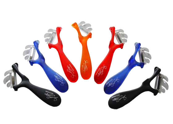 Der Schälblitz ist ein Schäler, der durch seine ergonomische Form besonders gut in der Hand liegt. Mit der schräg eingesetzten Klinge lässt sich Gemüse ganz leicht schälen. Ursprünglich fürs Spargelschälen entwickelt, hat er sich als Multischäler erwiesen. Die Schalen verheddern sich nicht, sondern werden durch den Spanabweiser neben das Gemüse geworfen. Die Klingen sind einzeln erhältlich und somit austauschbar. Und es gibt den Schälblitz auch für Linkshänder.